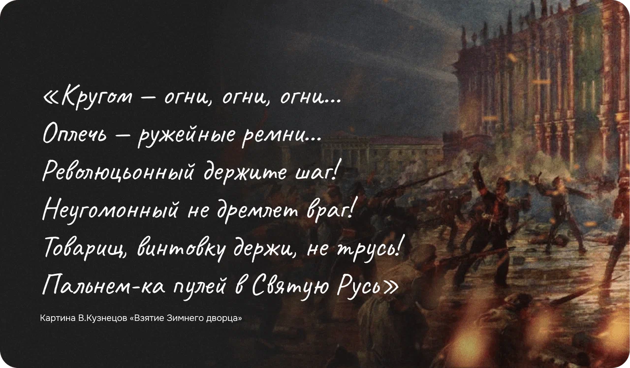 - Поэт стремился показать революцию как духовное явление, выходящее за пределы земного опыта.