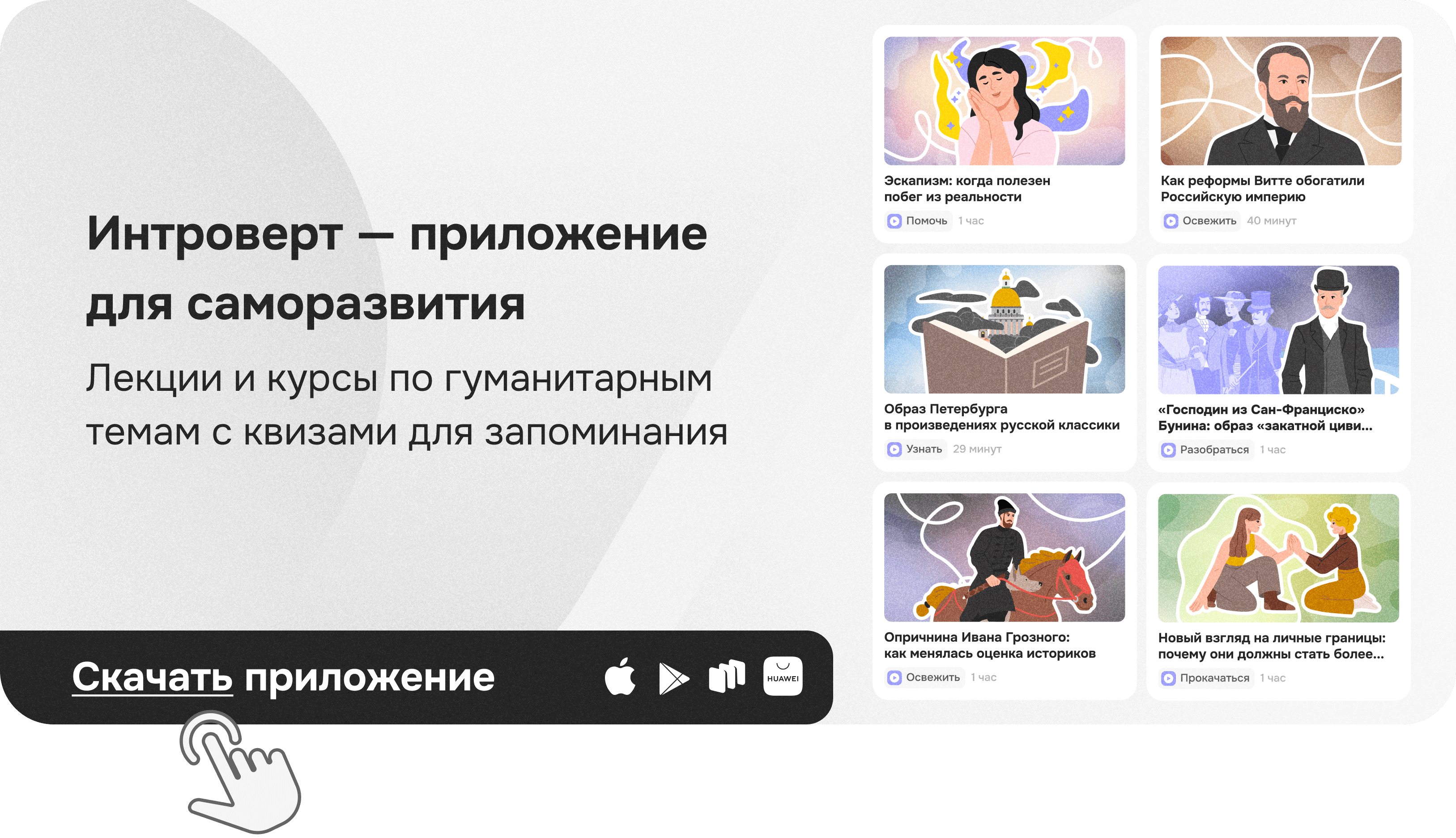 В статье рассказали о двух отличных современных русских книжках. Их контекст и психологизм тебе и так понятен, а что насчет классики? Включай саммари «История русской литературы». Там тебя ждет целых 2 часа материала, который поможет разобраться в теме и найти 3 причины депрессивности книг русских авторов.